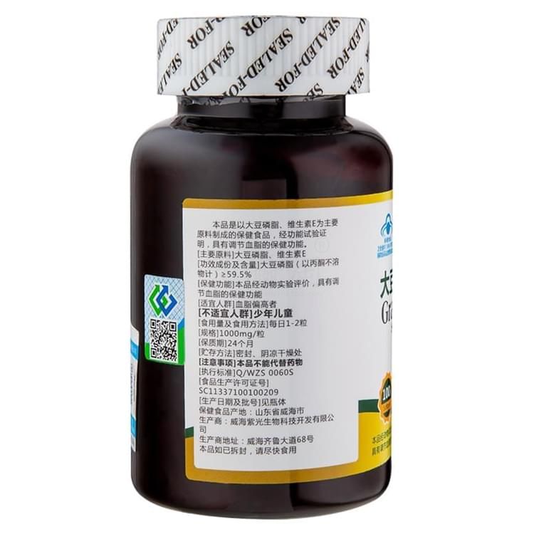 本品是以大豆磷脂、維生素E為主要原料制成的保健食品,經(jīng)動物功能試驗證明,具有調(diào)節(jié)血脂的保健功能。