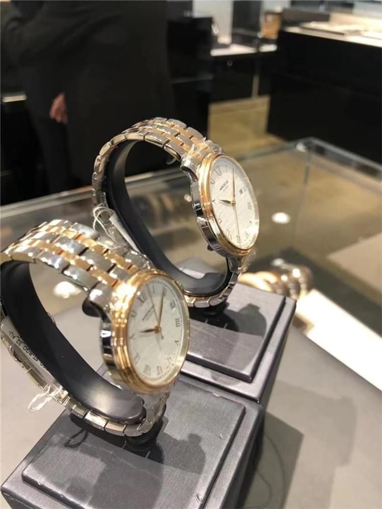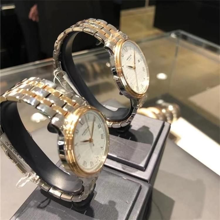 傳統(tǒng)系列男女對腕表 全自動機械,水晶藍寶鏡面 表緣18k玫瑰金 表帶鑲18k玫瑰金。