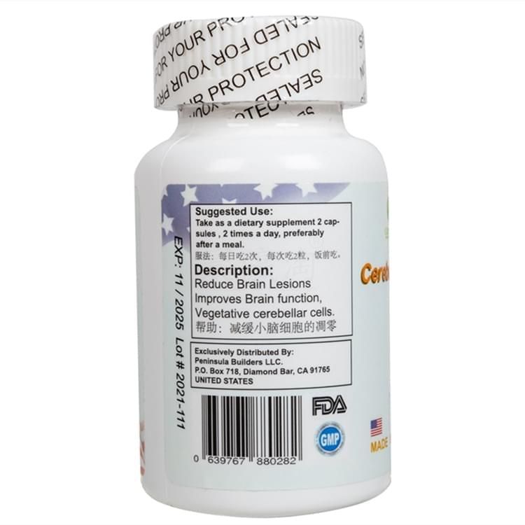 小腦萎縮膠囊 cerebellar atrophy 美國FDA、GMP認(rèn)證 美國優(yōu)秀植物中草藥類保健品。 該產(chǎn)品是美國生產(chǎn)的高科技中草藥產(chǎn)品,是將植物中草藥有效成分通過高科技加以提煉和濃縮,按照美國FDA的衛(wèi)生標(biāo)準(zhǔn)加工制作,不含西藥及化學(xué)成分。 核心組成: 忍冬藤、益智仁、姜黃、白芍、透骨草、仙靈脾、肉蓯蓉、羌活等、 服用注意: 勿吃太多冰水和食用冰品(冰激凌類),少食辛辣,海鮮魚蝦螃蟹,羊肉,不宜久坐,適量地多多走路等。 注意事項: 本產(chǎn)品不能替代藥品。 本產(chǎn)品應(yīng)遠(yuǎn)離兒童。 服用本產(chǎn)品前請咨詢您的醫(yī)生,特別是如果您正在懷孕、哺乳、已有醫(yī)療狀況或正在服用處方藥。不要超過每日推薦攝入量。 因產(chǎn)品介紹內(nèi)容是英文翻譯而來,表述缺乏一定的精準(zhǔn)性,僅供做個大概的參考,不作為本商品描述介紹的依據(jù),一切以實物介紹說明為準(zhǔn)。 零售價:¥490.00元。 支持批發(fā)。...