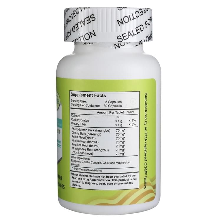 黃柏,白鮮皮,紫蘇子,半夏,白芷,蒼術(shù),荷葉等。