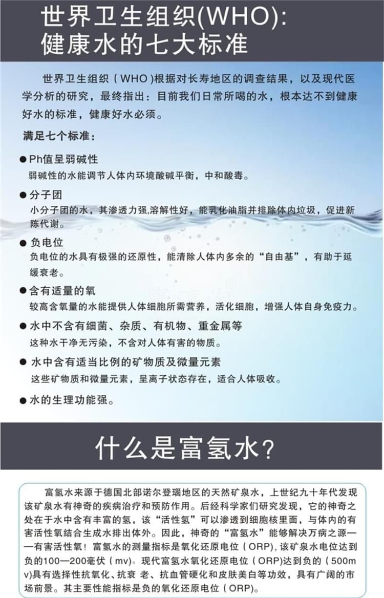 2、出水富氫H含量:大于oppm至700ppm或更高;出水氧化還原電位值(ORP)小于0mv至-350mv或更負(fù)。