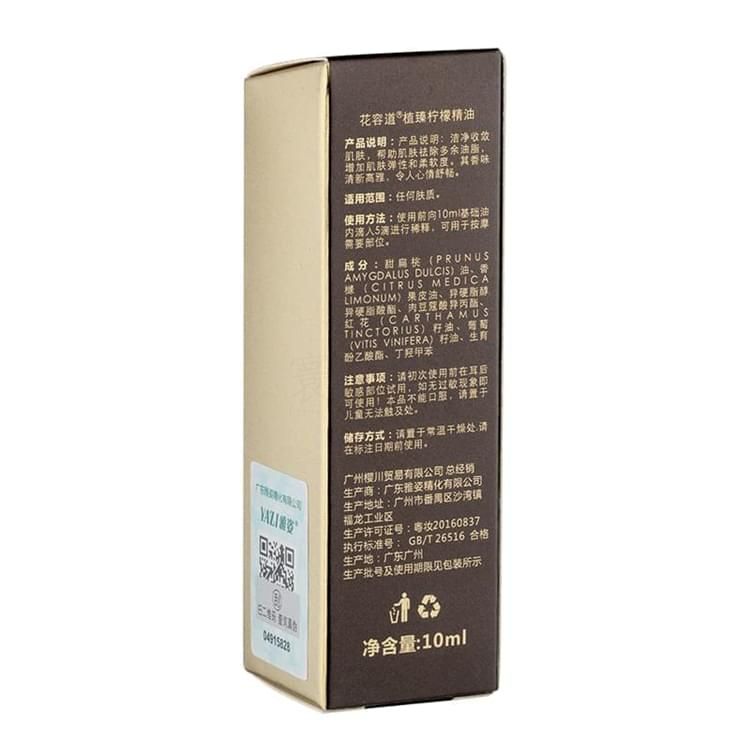 花容道系列 花容道植臻檸檬精油 保加利亞野生玫瑰花瓣精粹。 產(chǎn)品說明:清凈收斂肌膚,幫助肌膚去除多余油脂,增加肌膚彈性和柔軟度。其香味清新高雅,令人心情舒暢。 適用范圍:任何膚質(zhì)。 使用方法:使用前向10ml基礎(chǔ)油內(nèi)滴入5?滴進行稀釋,可用于按摩需要部位。 成分:?甜扁桃(PRUNUSAMYGDALUS DULCIS)?油、香櫞(CITRUS MEDICALIMONUM)?果皮油、異硬脂醇異硬脂酸酯、肉豆蔻酸異丙酯、葡萄(VITIS VINIFERA)?籽油、紅花CARTHAMUS TINCTORIUS)籽油、生育酚乙酸酯、丁羥基甲苯 注意事項:請初次使用前在耳后敏感部位試用,如無過敏現(xiàn)象即可使用!本品不能口服,請置于兒童無法觸及處。 儲存方式:請置于常溫干燥處。請在標(biāo)注日期前使用。 生產(chǎn)批號及使用期限見包裝所示 凈含量:10ml。 零售價:¥268.00元。 支持批發(fā)。...