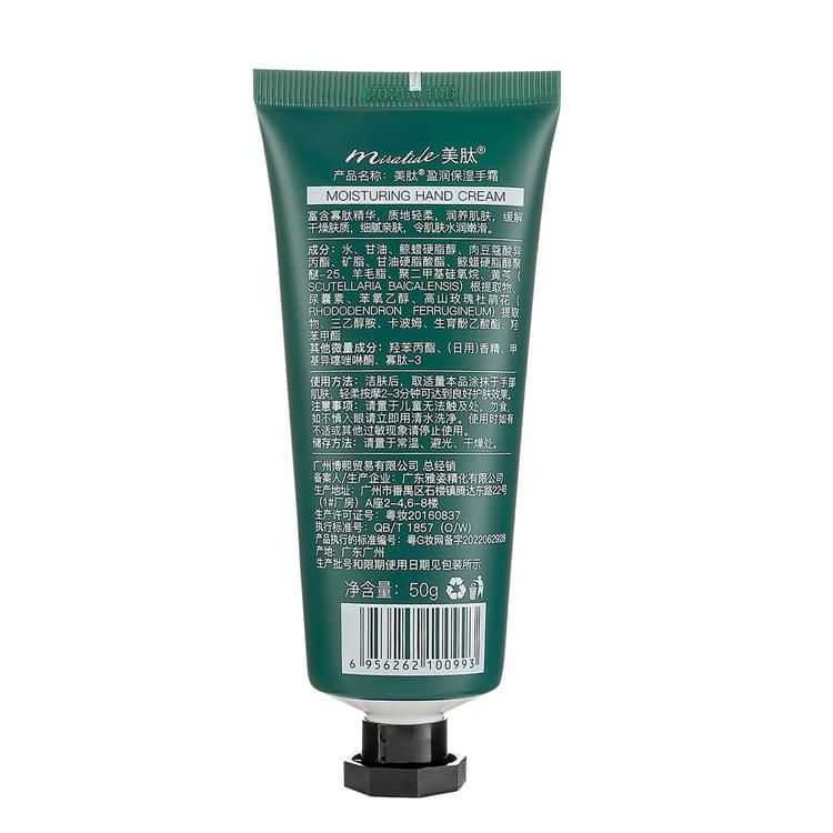 美肽活能煥顏系列 美肽盈潤保濕手霜 MOISTURING HAND CREAM富含寡肽精華,質(zhì)地輕柔,潤養(yǎng)肌膚,緩解干燥膚質(zhì),細(xì)膩親膚,令肌膚水潤嫩滑。 成分:水、甘油、鯨蠟硬脂醇、肉豆蔻酸異丙酯、礦脂、甘油硬脂酸酯、鯨蠟硬脂醇聚醚-25、羊毛脂、聚二甲基硅氧烷、黃芩( SCUTELLARIA BAICALENSIS)根提取物、尿囊素、苯氧乙醇、高山玫瑰杜鵑花( RHODODENDRON FERRUGINEUM)提取物、三乙醇胺、卡波姆、生育酚乙酸酯、羥苯甲酯。 其他微量成分:羥苯丙酯、(日用)香精、甲基異噻唑啉酮、寡肽-3 使用方法:潔膚后,取適量本品涂抹于手部肌膚,輕柔按摩2—3分鐘可達(dá)到良好護(hù)膚效果。注意事項(xiàng):請置于兒童無法觸及處,勿食如不慎入眼請立即用清水洗凈。使用時如有不適或其他過敏現(xiàn)象請停止使用。 儲存方法:請置于常溫、避光、干燥處。 凈含量:50g。 零售價:¥48.00元。 支持批發(fā)。...