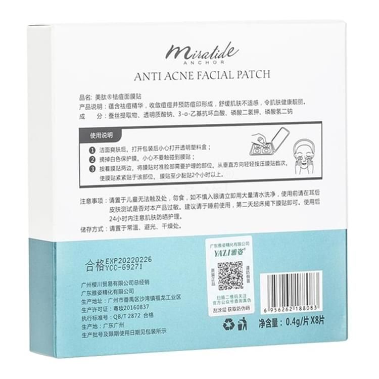 美肽活能煥顏系列 美肽祛痘面膜貼 產(chǎn)品說明:蘊(yùn)含祛痘精華,收斂痘痘并預(yù)防痘印形成,舒緩肌膚不適感,令肌膚健康靚麗。 成??分:蠶絲提取物、透明質(zhì)酸鈉、3-0-乙基抗壞血酸、磷酸二氫鉀、磷酸氫二鈉 使用說明 1.潔面爽膚后,打開包裝后小心打開透明塑料盒; 2.摘掉白色保護(hù)膜,小心不要觸碰到膜貼; 3.按著膜貼兩邊,將膜貼對準(zhǔn)臉部需要護(hù)理的部位,從垂直方向輕輕按壓膜貼數(shù)次,使膜貼緊緊貼于該部位,膜貼至少粘貼2個(gè)小時(shí)以上。 注意事項(xiàng):請置于兒童無法觸及處,勿食,如不慎入眼請立即用大量清水洗凈,使用前請?jiān)诙笃つw測試是否對本產(chǎn)品過敏。建議請于睡前使用,第二天起床揭下膜貼即可。使用后24小時(shí)內(nèi)注意肌膚防曬護(hù)理。 儲(chǔ)存方式:請置于常溫、避光、干燥處。 肌膚普通護(hù)理流程: 卸妝-潔面乳-爽膚水-精華液-乳液-膏霜。每一個(gè)階段可以根據(jù)您的需要選擇不同功能的產(chǎn)品。 凈含量: 0.4g/片X8片。 零售價(jià):¥135.00元。 支持批發(fā)。...