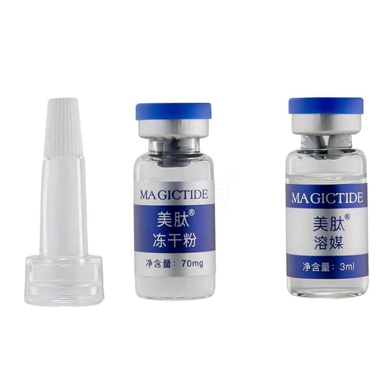 2、凍干粉溶解后將透明膠頭套在混合好的凍干粉瓶口上,使用時打開膠頭頂部蓋帽即可