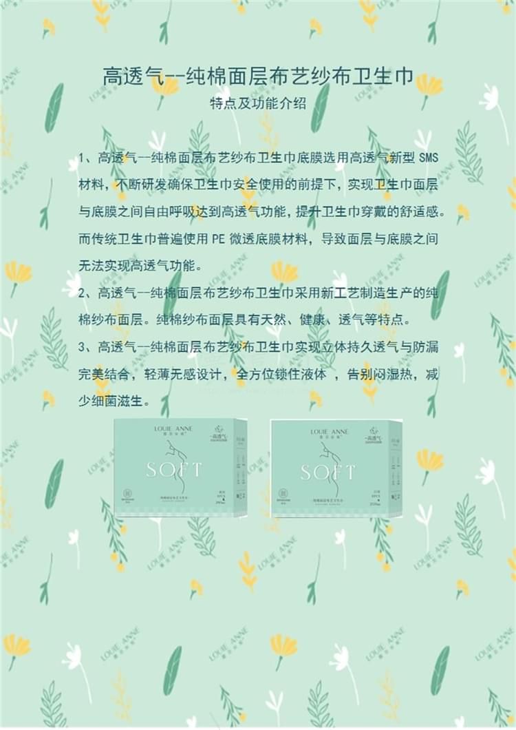 3、高透氣——純棉面層布藝紗布衛(wèi)生巾實(shí)現(xiàn)立體持久透氣與防漏完美結(jié)合,輕薄無感設(shè)計(jì),全方位鎖住液體,告別悶濕熱,減少細(xì)菌滋生。