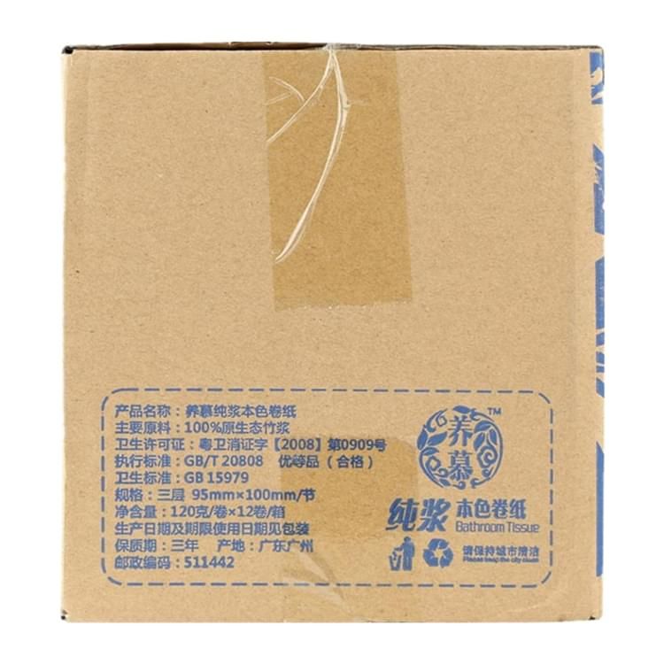 養(yǎng)慕純漿本色卷紙 100%竹漿本色紙 主要原料:100%原生態(tài)竹漿 衛(wèi)生許可證:粵衛(wèi)消證字{2008}第0909號 執(zhí)行標(biāo)準(zhǔn):GB/TT20808 ? 優(yōu)等品(合格) 衛(wèi)生標(biāo)準(zhǔn):GB15979 規(guī)格:三層95mmx100mm/節(jié) 凈含量:120克/卷x12卷/箱 保質(zhì)期:三年 產(chǎn)地:廣東廣州 零售價:¥128.00元。 支持批發(fā)。...