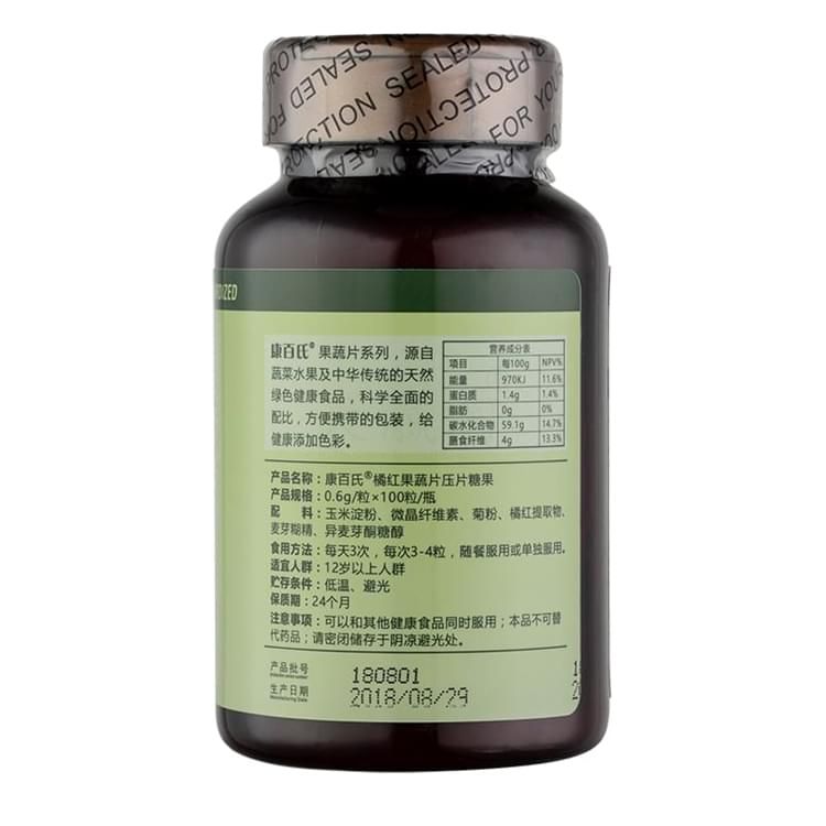 康百氏橘紅果蔬片 規(guī)格:橢圓形片劑,每片含化橘紅20毫克。 成分:化橘紅、西青果、杏仁等藥食同源植物。 作用類別:止咳化痰、通宣理肺。 用法用量:每次3片、每日3次。 保質(zhì)期:24個(gè)月 凈含量:60g (100片※0.6g/片) 注意事項(xiàng): 本產(chǎn)品不能替代藥品。 本產(chǎn)品應(yīng)遠(yuǎn)離兒童。 服用本產(chǎn)品前請(qǐng)咨詢您的醫(yī)生,特別是如果您正在懷孕、哺乳、已有醫(yī)療狀況或正在服用處方藥。不要超過每日推薦攝入量。 其他以產(chǎn)品實(shí)物說明為準(zhǔn)。 零售價(jià):¥180.00元。 支持批發(fā)。...