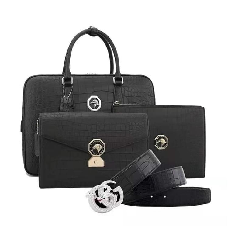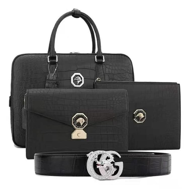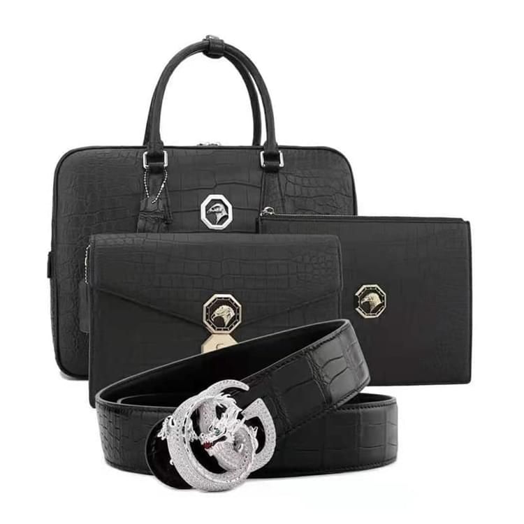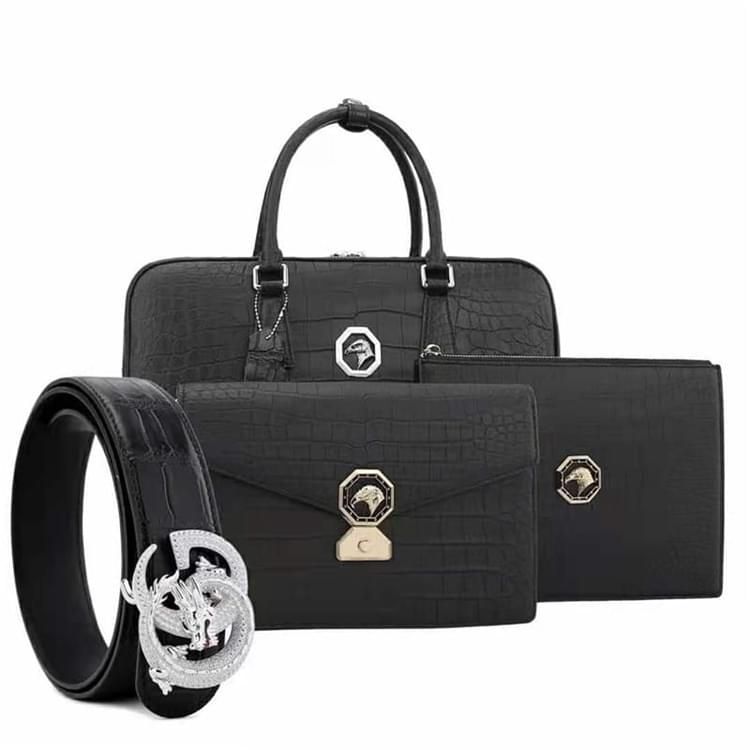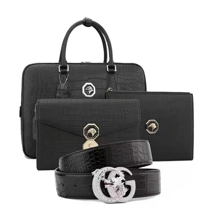 秾福稀有皮高端包包定制#8040 男士尼羅霧面套裝 腰帶、兩款手包、公文包。 支持:小牛皮、羊皮內(nèi)里定制。 支持:全鋼五金、蠟線縫制工藝定制。 支持:鱷魚(yú)皮、蟒蛇皮、鴕鳥(niǎo)皮、蜥蜴皮、珍珠魚(yú)皮定制。 支持:黑色、咖色、紫色、黃色、灰色、喜馬拉雅白等等多種擦色定制。...