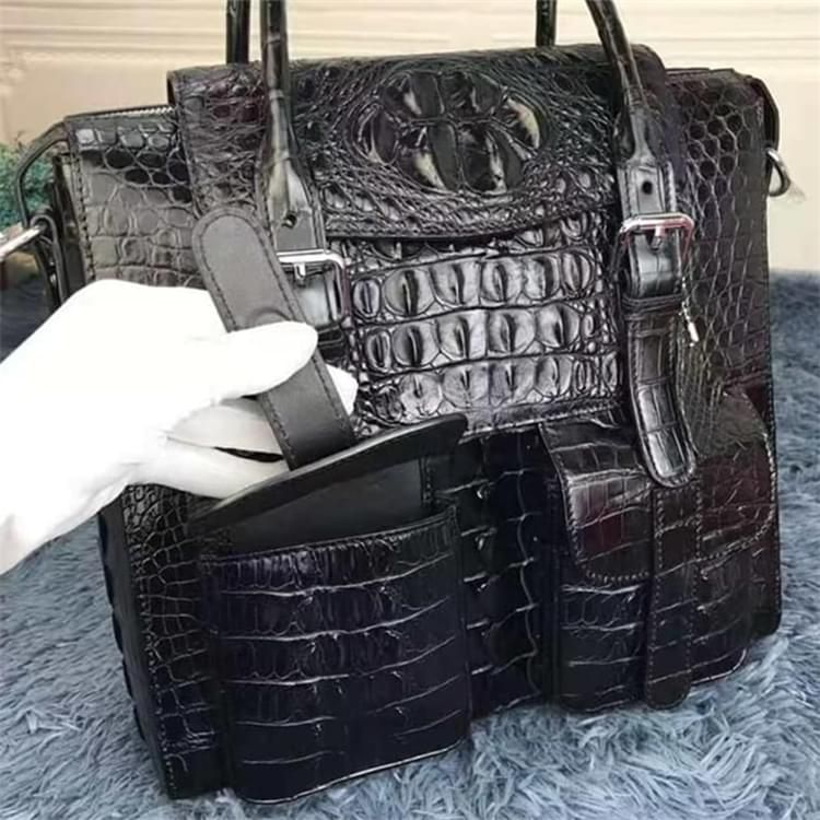 秾福稀有皮高端包包定制#8004 鱷魚骨皮男士休閑公文包 手提包,可單肩。 規(guī)格:32X31X13 支持:小牛皮、羊皮內里定制。 支持:全鋼五金、蠟線縫制工藝定制。 支持:鱷魚皮、蟒蛇皮、鴕鳥皮、蜥蜴皮、珍珠魚皮定制。 支持:黑色、咖色、紫色、黃色、灰色、喜馬拉雅白等等多種擦色定制。...